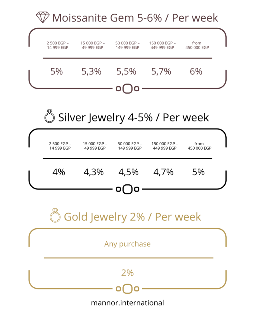 At Manor International, the same principle is applied through the Mannor MoneyBack Program — a structured system that returns a percentage of your jewelry purchase back to you every week during a defined reward cycle.